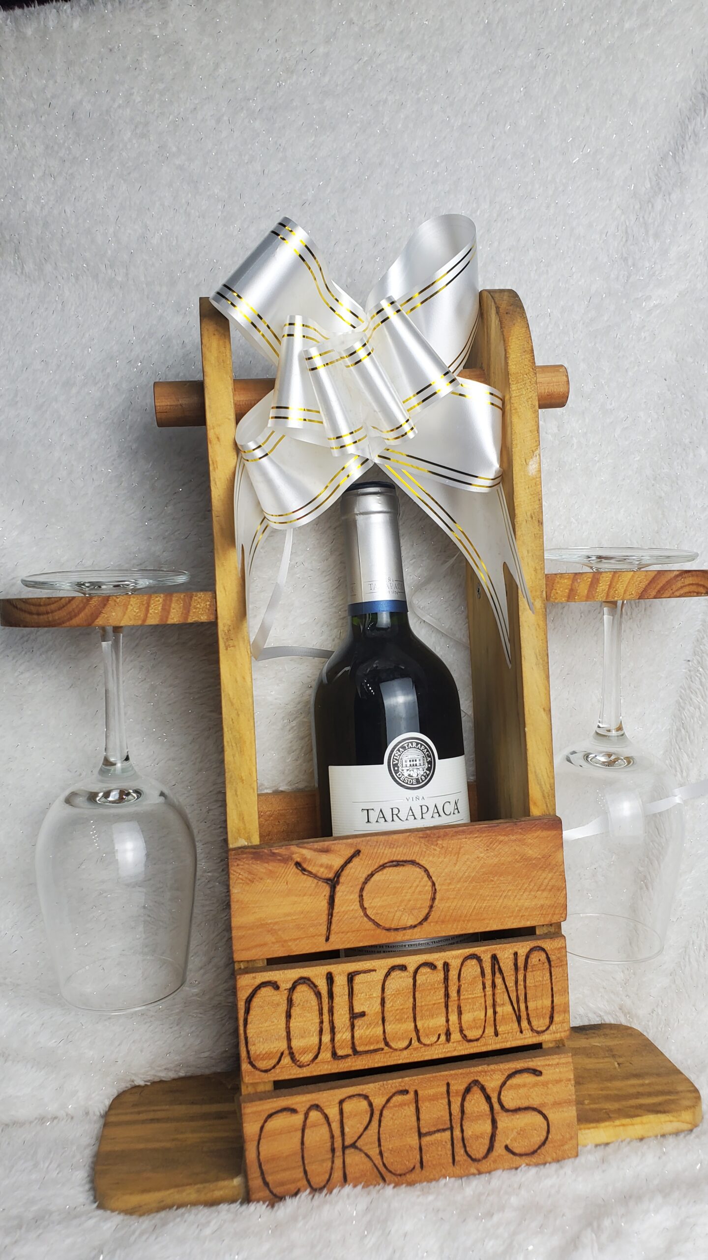 Porta vino con copa y botella